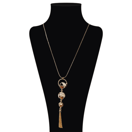 Collar largo dorado de cadena, aleación de metales, con resinas en tonos otoñales.