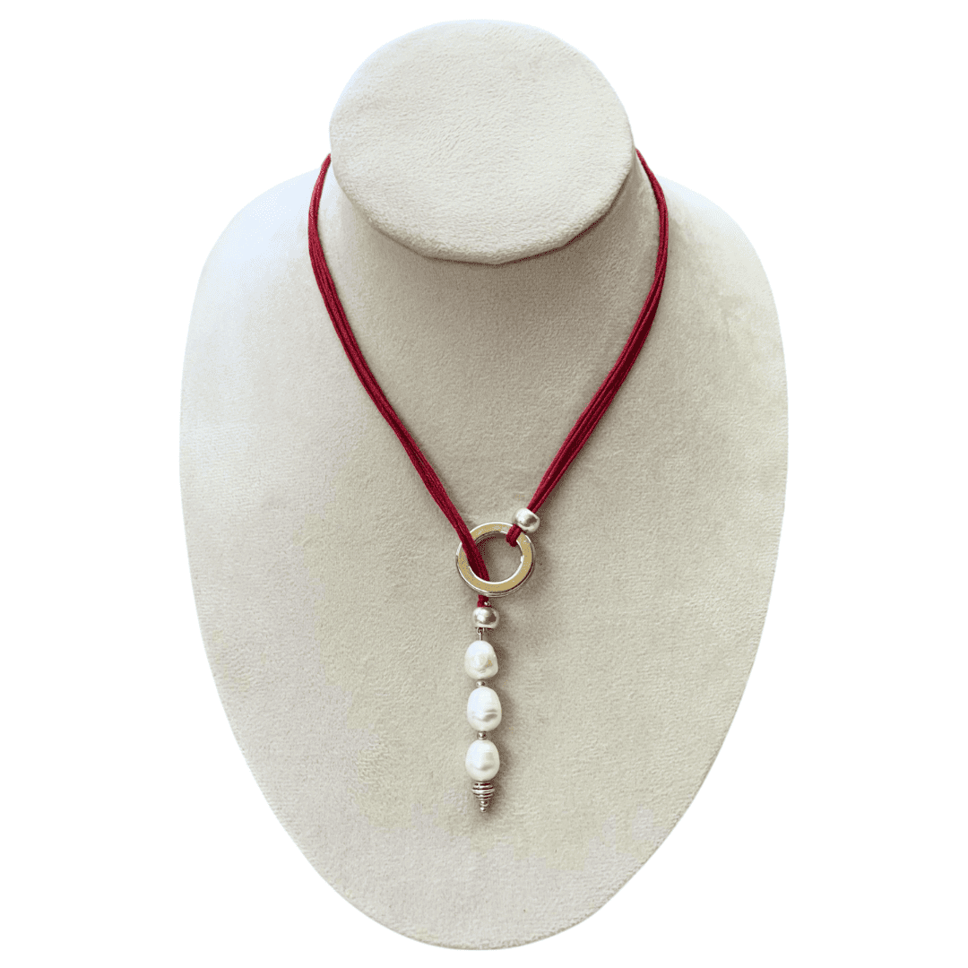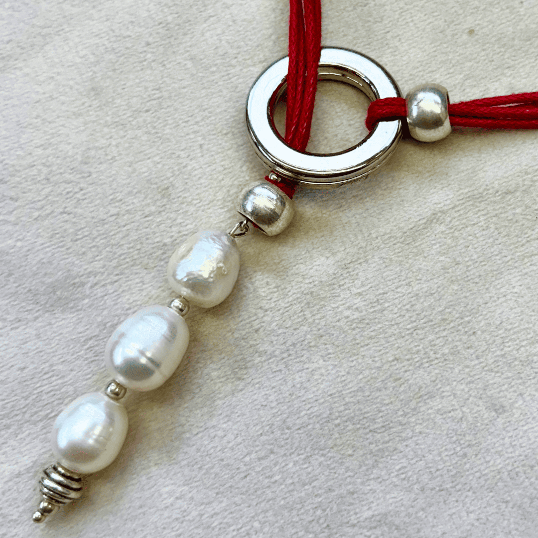 Un delicadísimo y etéreo collar que fusiona la suavidad artesanal con el brillo clásico de las gemas. La pieza presenta un diseño minimalista con un hilo de algodón suave. Joyas Naturales: El diseño está acentuado por el resplandor sutil de auténticas perlas cultivadas, que añaden un toque orgánico y refinado. Estilo: La combinación de materiales crea un look bohemio-chic muy versátil. Ideal para: Usar solo como un detalle sutil en tu cuello o para crear elegantes composiciones en capas con otras cadenas.