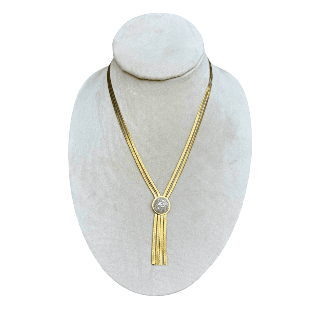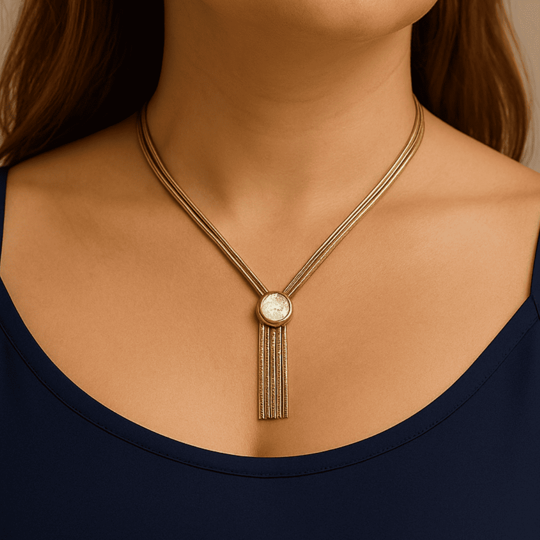Un delicado y moderno collar que ofrece la belleza clásica de la perla con una construcción duradera. La pieza central es una suave perla de brillo sutil, enmarcada por una fina cadena y detalles que irradian sofisticación. Materiales: Confeccionado en resistente acero inoxidable y embellecido con un lujoso baño de oro de 18k, lo que garantiza un uso prolongado sin perder su encanto. Estilo: Es un accesorio versátil, perfecto para llevar solo o para crear elegantes combinaciones en capas. Ideal para: Un uso diario que requiere elegancia y resistencia.