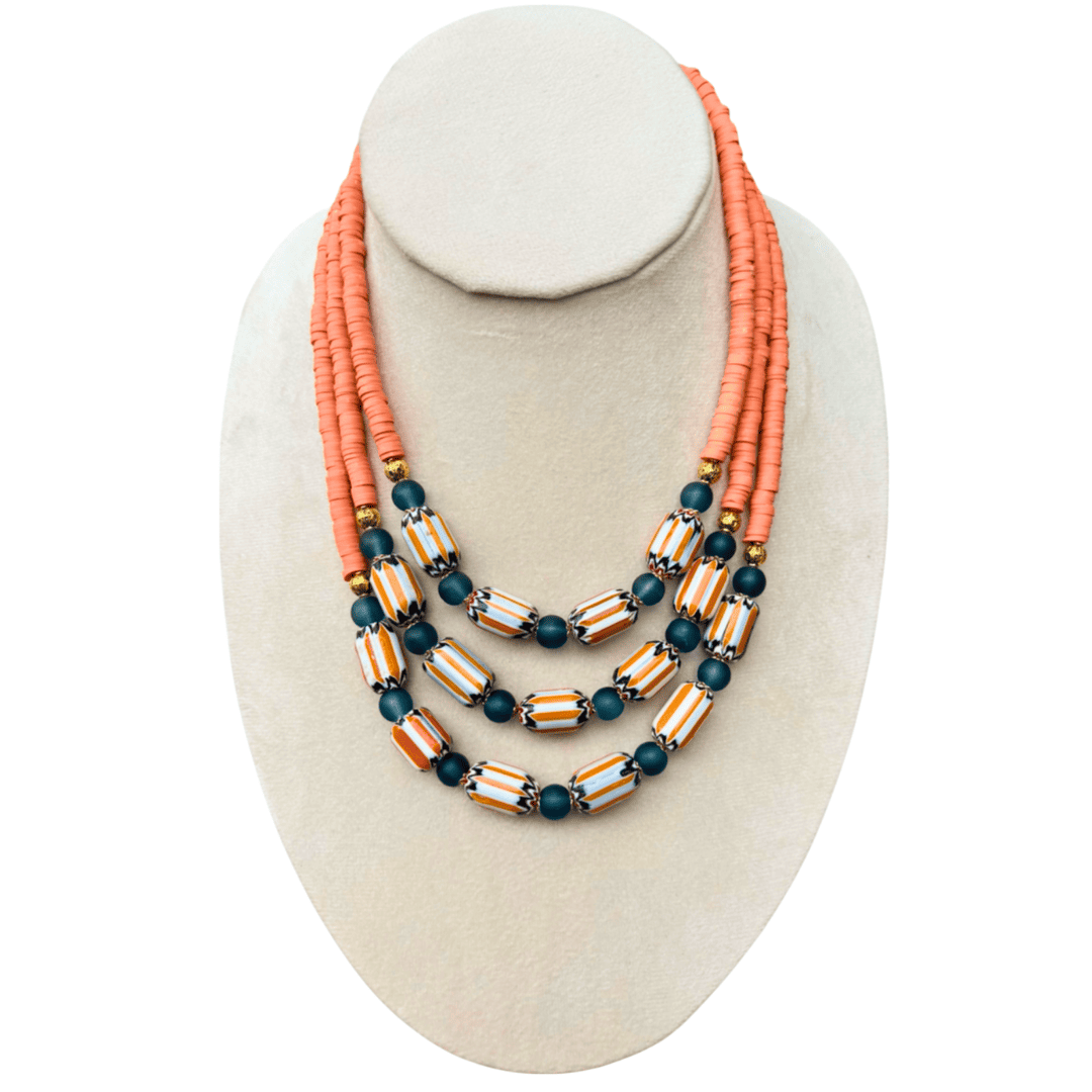 Enigmático collar de 3 capas, Baño de oro 12k, Arcilla polimérica y cristales checos.