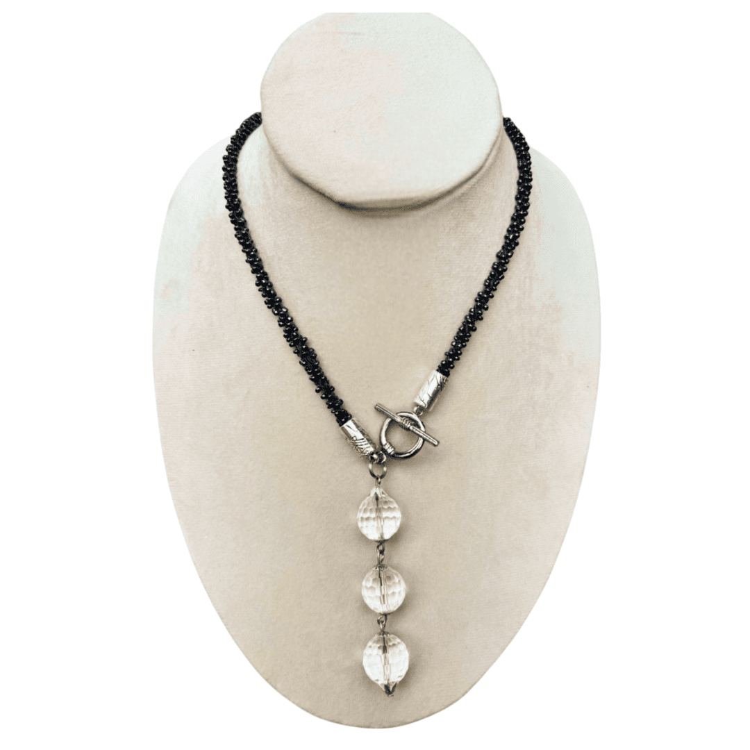 Un ensoñador collar que evoca una belleza sutil y artística, perfecto para un estilo relajado pero elegante. La pieza presenta una delicada y brillante secuencia de cristales checos facetados que reflejan la luz con un brillo suave. Materiales: Se complementa con detalles rústicos de pewter (estaño), que añaden un toque artesanal y un contraste de textura. Estilo: Su diseño es ligero y etéreo, ideal para llevar solo o en capas. Ideal para: Quienes aprecian la joyería hecha a mano y buscan un accesorio que combine la calidad del cristal con el encanto rústico.